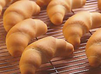 このパンはクロワッサンの原形ともいわれていますが、当時はキプフェルやヘルヘン(角<つの>パン)のような三日月形をした普通の小麦パンで、現在のような折り込み生地のクロワッサンは20世紀に入ってからフランスで誕生します。