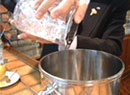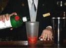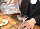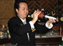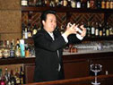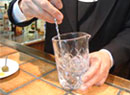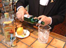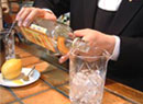 カクテルを作成してくださるのは、リーガロイヤルホテル1F「リーチバー」マネージャーの古澤孝之さんです。古澤さんは「2001年 HBA・JW&S社 共催カクテルコンペディション  スミノフウォッカの部」の優勝者で、他にも多数のカクテルコンテストで優勝されています。リーチバーでは古澤さんがいろいろなコンテストで優勝されたカクテルを飲むこともできます。また、辻調グループ校ではカクテルの授業を担当していただいています。