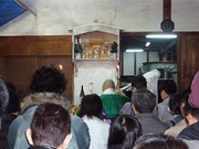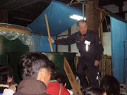 上槽祭では田植えや稲刈りのような大掛かりな作業はありません。まずは新酒が出来たことを神さまに感謝し、みんなで成田山に祈祷をささげます。その後に蔵に入ります。蔵は吟醸香といわれる梨やメロンのような甘いフルーツの香りがいっぱいで、参加者たちはこれから始まる搾りが待ちきれない様子です。