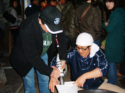 前回、山野酒造さんに特別にお邪魔し、仕込み真っ最中の現場をレポートさせていただきました。今回は最終回、山野酒造さんで毎年行われている「上槽祭」に参加し、発酵が終わった酒を袋吊りにしていよいよ日本酒を搾る…はずでしたが、上槽祭が行われる3月の15日はなんと辻調のフェスティバルと同日!!残念ながら今回は不参加でしたので、昨年までの資料と参加した友人からの写真を中心にレポートします。
