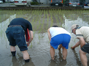 今回は残念ながら雨天となり、ずぶぬれの中の田植えでした。まあ、「どうせ泥んこだから・・」とあきらめての作業でした。さあ、次回は収穫!10月の末ですからレポートはもっと後になると思います。手作業の稲刈りは重労働ですが、おいしいお酒のために次回もがんばります。