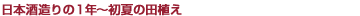 日本酒の原料は「お米」ですから、まず田植えから始まります。植えるのは、酒造好適米の「山田錦」です。通常食卓に上る「コシヒカリ」や「あきたこまち」と違い、日本酒はその醸造に適した米を使用します。それらを酒造好適米と呼び、「山田錦」「五百万石」「雄町」「美山錦」などの品種があります。通常のタンパク質(美味しさ)の多い米では酒に仕立てときに雑味が多くなり、おいしいお酒にはならないそうです。