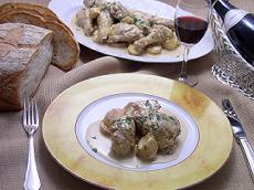 | フランスの家庭で昔から食べられている料理です。本来はうさぎを使うのですが、入手が難しいので、代わりに肉質の似ている鶏肉で作ります。鶏肉は骨つきのもも肉を使うと、骨からも旨みが出ておいしく仕上がります。残ったソースもパンにつけたりしてきれいに食べ切ってください。