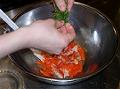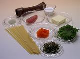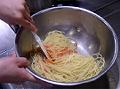 塩(湯の量の1%)をした熱湯でアル・デンテにゆで上げたスパゲッティを6に加えて和える。