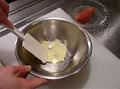 常温に戻した無塩バターをボウル入れ、ゴムベラで混ぜてポマード状にする。