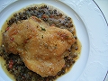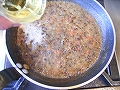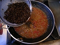 鶏肉に火が通れば取り出し、レンズ豆を加えて、少し煮含めながらソースを煮詰める。
