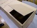 縦長のダンボール(無ければ重ねてもよい)の底の方に、スモークウッドを出し入れできるように、30cm位の切り込みを入れ、扉を作る。