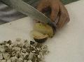 乾燥ポルチーニ茸は水で戻してみじん切りにし、戻し汁はペーパータオルで漉す。