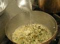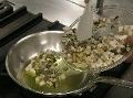 イタリアンパセリのみじん切りを加えてさらに炒め、白ワインを加えてアルコール分を飛ばす。