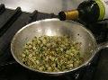 フライパンにオリーブ油を中火で熱し、にんにくのみじん切りと一緒に香ばしく炒める。