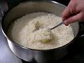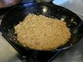 フライパンにラードを溶かし、玉ねぎのみじん切りを炒める。