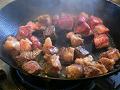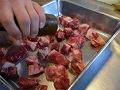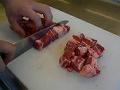 牛肉は余分な脂などを取り除き、3cm角に切り分ける。