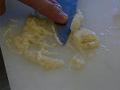 バナナは包丁の背を使ってつぶす。りんごはすりおろす。