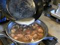 牛肉を煮込んでいた液体を加えて、溶きのばす。