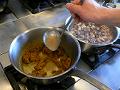 12にすりおろしたりんご、つぶしたバナナ、チャツネ、タイム、ローリエを加える。