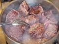 煮上れば肉を取り出し、肉が乾かないようにラップフイルムなどをかぶせておく。