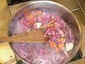 野菜がしんなりしてくれば、小麦粉を振り入れて軽く炒め、トマトペーストを加えてさらに軽く炒める。