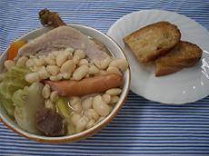 フランス南西部地方の料理です。豆と野菜を、豚バラ肉の塩漬けや鴨のもも肉のコンフィと一緒に煮込みます。ご家庭では、豚バラ肉や鴨のコンフィをベーコンやハム、ソーセージに代えても構わないでしょう。