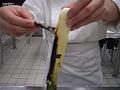 少し冷ましてから、手で外側の黒く焼けた部分をむく。ドレッシングを作っておく。