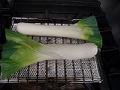 下仁田ねぎの泥を洗い落とし(乾燥したような皮は付けたままで良い)、焼き網の上で表面が黒くなるまで焼く。途中で向きを変える。