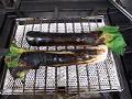 写真のような色になるくらいまで焼く。竹串か包丁をすっと刺してすっと抜けるようなら十分に火が通った証拠。