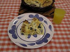 | およそ100年前に、ポルトガルのポルト港の大衆食堂で生まれたといわれている「バカリャウ・ア・ゼ・ド・ピポ」は、干しダラとマッシュポテトを合わせたものに、マヨネーズをたっぷりとかけて焼き上げた料理です。手に入れやすいタラの切り身でアレンジしてみました。ごはんに、パンに、そしてビールやワインにも・・・マヨネーズと白身魚とじゃがいものトリオは合わせる相手を選びません。 |