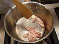 ベーコンとにんにくの香りがしっかりと出て、香ばしい色が付くまで炒める。