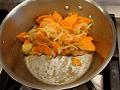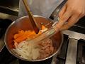 玉ねぎ、にんじんを加えて軽く色付くまで炒める。