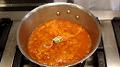 トマトの色素が失われるので、アクはとらないようにしましょう。