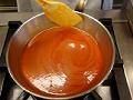 トマトピューレの色がオレンジ色になるまで炒め続ける。