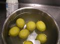 4つ割りのレモンを絞り、果汁とともに絞った残りの皮も一緒に加え、ふたをして一晩おく。