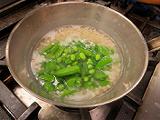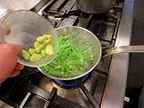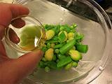 空豆のように表面の皮の取れるものは、取り除いたほうがし食感も色合いも良くなります。