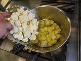 カリフラワーは火が通り始めると崩れやすくなるので、最初にしっかりと混ぜて油を吸い込ませるようにしましょう。