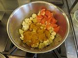 基本のカレーミックスとトマトを加え、軽く全体を混ぜ合わせる。