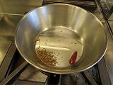 冷たい鍋に油とスパイスAを入れ、弱火にかけてじっくり熱する。
