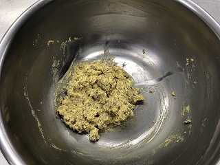 冷めたら取り出しておいた黄身も一緒にボウルに入れて混ぜ合わせる。塩、胡椒で味を調える。