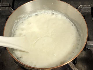 小麦粉をバターでしっかり炒めないと粉気が残りますが、温度が高すぎると焦げてしまうので、炒める温度には注意する。