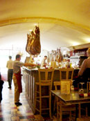 ワイン1杯でも、ハムだけでも自分のお腹の具合に合わせて食べることができる、今、パリで流行りのタパス・バーです。地下には10名程度の大きなテーブルがあります。デザートのひとつ《クレーマ・カタラン》は、クレーム・ブリュレの原型とも言われています。