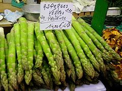 私もフランス滞在中、春先になれば休みの日には必ずアスパラガスを買いに行きました。初めて見た感想は、とにかく太い!!太い!!(上の写真参照)。これをゆでて市販のドレッシングで食べるだけのシンプルな料理を作りましたが、その味わいは本当に、野菜そのものの味、甘みを感じる強烈な印象でした。帰国して3年が過ぎた今でもその記憶が鮮明に残っています。