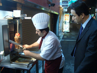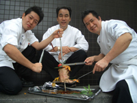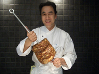 ウーム!実はだな、フランス校勤務の折、夜中にお腹が空いて町に出て店を探していたら、なーんか懐かしい香りがしてきて、ふらーっと立ち寄って食べたのがドネルケバブ!忘れられなくてね・・・その焼き上がりのどうどうとした姿が頭に浮かんで、“男祭り”にはこれしかない!と思ったんだよ。