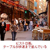 写真(下の左)は、フランスはリヨンの町のほぼ中心あたりのメルシエール通り。これぞビストロ街と呼びたくなるほど、狭い通りの両側にはビストロが並んでいます。