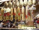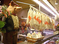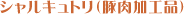 シャルキュティエで扱われている加工品、ハムやソーセージ、パテ、テリーヌ、リエットなどを<シャルキュトリ>と呼びます。スーパーマーケットが無かった昔は、どの村にも1軒くらいはシャルキュティエがあり、そこでハムを1枚から買うことができました。ハムと言うと我々はすぐに直径10cmくらいの筒状のものをイメージします。あれはプレスハムの類で、形を整えるためにビニールの筒状の袋につめてプレスして火を通したものです。