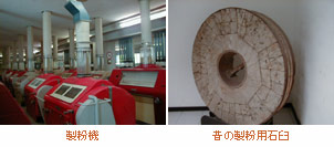 さて、乾燥パスタの製造は、まず数種の小麦を粒のままブレンドし、それを挽いて粉にすることから始まります。挽いてから時間が経った粉で作るとおいしいパスタができないため、この会社では工場の横に製粉所を持っているほどです。この製粉の工程は現在では機械で行われていますが、昔は大きな石臼のようなものを使っていたそうです。