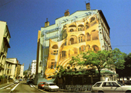 壁に大きく描かれただまし絵。手前の椅子はアイスクリームショップのもの