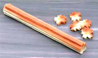 生麩は、グルテンに「もち粉」を加えて練り、ゆがいて作ります。