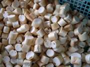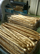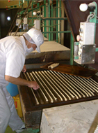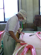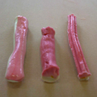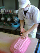 左:生の生地中:下ゆでしたもの右:型に入れて本ゆでしたもの