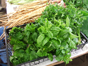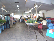 鎌倉の市場の風景です。両端に野菜が並びます。