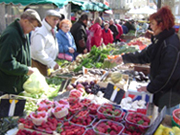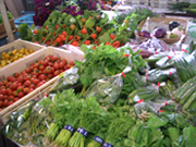 フランスのマルシェです。お客さんは農家の人と会話をしながら買い物をしています。