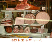 K : 特にがサルーミ(畜肉加工品)ねーっ。イタリアは必ずと言っていいほど地方ごとに名産のサルーミがあって、有名なところではパルマの生ハムやサン・ダニエーレの生ハムにボローニャのモルタデッラあたり。他にもサラーメ・ディ・ミラノなどなど・・・いっぱいあって紹介しきれへん! まるで日本のお漬物のような感じやねーっ。