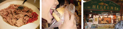 K : ヴェネツィアの魚市場近くで食べたモレーケ(脱皮直後の柔らかい蟹)のフライはなかなかやったね。あとは・・・フィレンツェの中央市場で食べたランプレドット(牛の臓物の煮込み)もおいしかったなあ。ビールのつまみに最高! 似たような料理に日本のホルモン焼きがあるけど、これとはちょっと違ってもっとトロトロに煮込んであって、ピリッと辛い唐辛子のソースをかけて食べれば、おでんを食べてる感じかな。